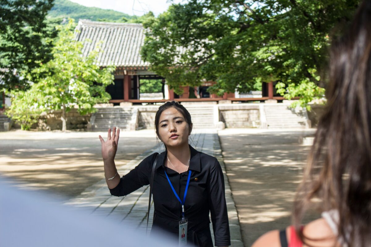 Srdcem severokorejského cestování jsou průvodci, často mladí, sympatičtí lidé s výbornou angličtinou a milým smyslem pro humor. Umějí mluvit o módě, sportu i kultuře, ale zároveň dokážou odříkat příběhy o dokonalosti socialismu a moudrosti severokorejských vůdců. Jejich role je dvojí: ukázat nejlepší tvář země a zároveň udržet turisty v „bezpečné zóně“, kde neuvidí nic, co do připraveného scénáře nepatří.