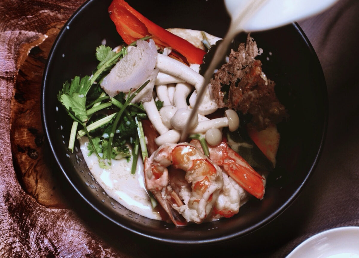 Co je v thajské kuchyni jednou z nejdůležitějších věcí? Vyvážená chuť. A právě to polévka Tom Kha splňuje a je postavená na kontrastech. Krémové kokosové mléko doplňuje kyselost limetky, pikantnost chilli a nakonec slanost.